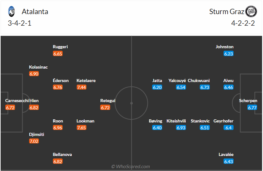 Atalanta đang đứng thứ 13 trên bảng xếp hạng, vị trí sẽ được dự vòng knock out. Với 11 điểm đang có thì cơ hội lọt vào top 4 của đội bóng Italia là vẫn còn và điều họ cần làm là thắng 2 trận đấu còn lại để nuôi hy vọng đó. Đối thủ của họ ở lượt đấu thứ 7 chỉ là đội bóng yếu Sturm Graz nên cơ hội giành chiến thắng của các cầu thủ Atalanta là rất cao. Nhiều khả năng đội bóng chủ nhà sẽ chơi tốt trận này và giành chiến thắng với tỉ số cách biệt.