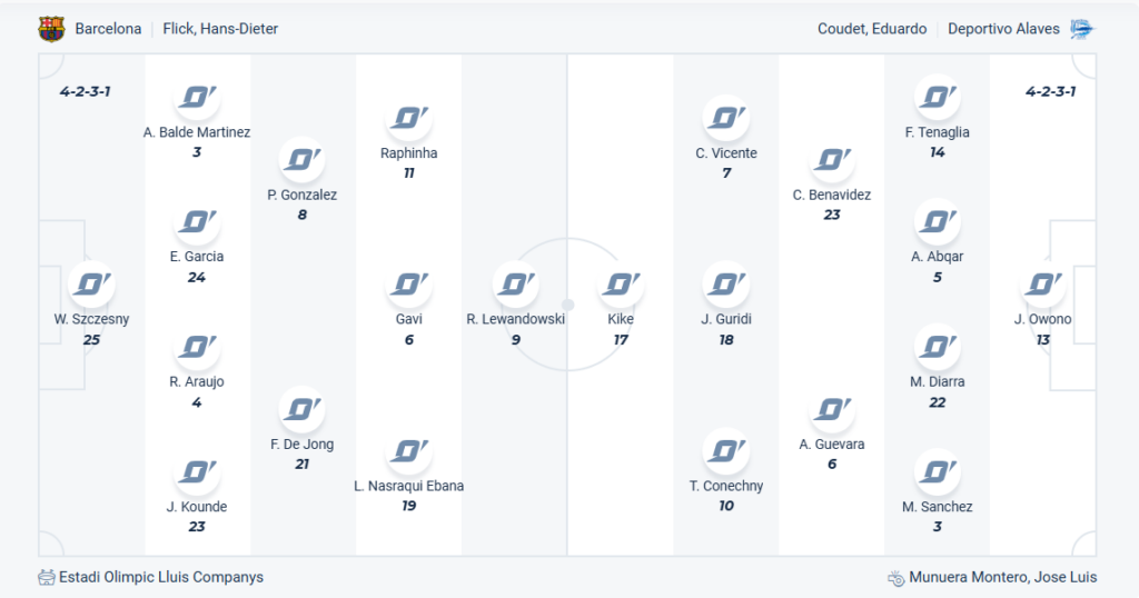 Sau chuỗi 4 trận liên tiếp không thắng tại La Liga thì Barcelona đang chơi tốt hơn thời gian gần đây trên mọi mặt trận, họ thắng 4, hòa 2 trong 6 trận gần nhất của mình. Thầy trò HLV Hansi Flick đã có vị trí tốt tại Champions League, đã giành Siêu cup và giờ đây họ cần tiếp tục duy trì chuỗi trận thành công đó vào La Liga để thắng các trận đấu của mình. Với việc đã rơi xuống vị trí thứ 3 thì Barcelona càng cần phải thắng ở vòng 22 này, trước đối thủ yếu như Alaves thì nhiều khả năng đội bóng xứ Catalan sẽ không gặp nhiều khó khăn để có 3 điểm trọn vẹn.
