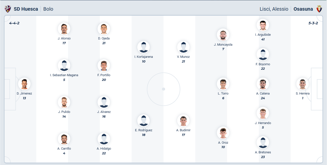 Huesca đang đá ở La Liga 2, họ đứng thứ 8 mùa giải trước và đang đứng thứ 15 mùa giải này. Rõ ràng đây không phải vị trí khiến các fan hài lòng bởi mục tiêu của họ là làm sao đó để có cơ hội giành vé thăng hạng. Ở đấu trường cup nhà của các cầu thủ của HLV Bolo muốn đi sâu nhất có thể, ở vòng 32 đội họ phải gặp đội bóng ở La Liga là Osasuna. Đương nhiên đây là trận đấu rất khó khăn với Huesca nhưng trước đối thủ đang không có phong độ tốt thì cơ hội giành chiến thắng với đội chủ nhà không hề ít.