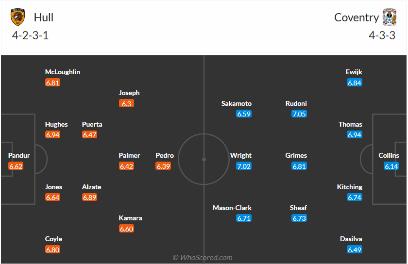Coventry đã chơi vô cùng ấn tượng kể từ khi HLV Frank Lampard nắm quyền, họ đã leo 1 lèo từ nhóm xuống hạng lên nhóm có vé thăng hạng. Với vị trí thứ 6 hiện tại thì các cầu thủ Coventry hoàn toàn có thể nghĩ đến việc thăng hạng quá chiếc vé play off. Tuy nhiên khoảng cách giữa họ và các đội đứng sau rất nhỏ nên chỉ cần 1 trận mất điểm thì sẽ mất vị trí hiện tại, nên các cầu thủ Coventry cần tiếp tục giành chiến thắng ở vòng 42 này sau khi có 3 điểm ở vòng đấu trước. Đến làm khách trên sân của đội bóng chơi không ổn định mùa này như Hull không phải trận đấu quá khó khăn, nhiều khả năng Coventry sẽ chơi đủ tốt để ra về với 3 điểm trọn vẹn.