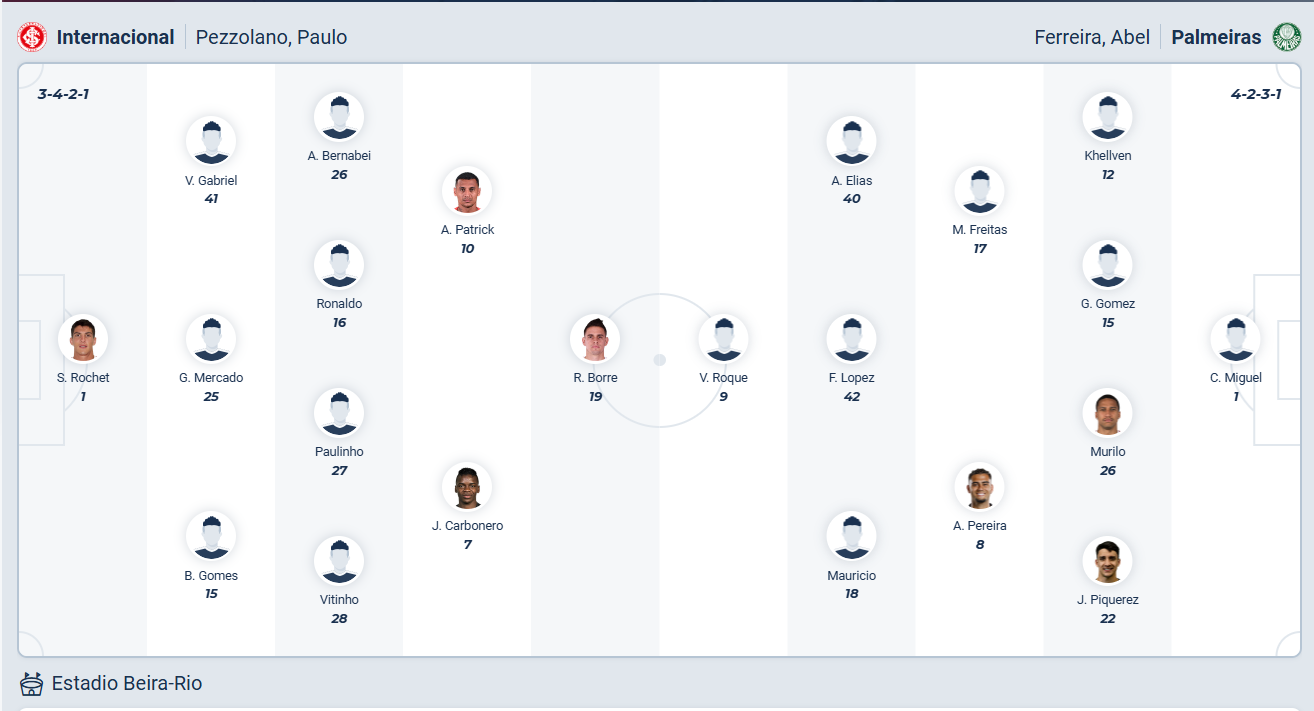 Palmeiras đứng thứ 2 mùa giải trước, họ vẫn là một thế lực của bóng đá Brazil. Mùa giải năm nay đội bóng của HLV Abel Ferreira muốn cạnh tranh cho chức vô địch nên 4 điểm sau 2 trận đầu tiên không thể khiến họ hài lòng. Các cầu thủ Palmeiras cần chơi tốt trong các trận đấu sắp tới và giành chiến thắng để có thể nằm trong top các đội dẫn đầu. Chính vì vậy khi đến làm khách trên sân của Internacional thì 3 điểm là điều mà Palmeiras hướng đến. Với đội hình mạnh hơn và đang có phong độ tốt hơn thì nhiều khả năng phần thắng trận này sẽ thuộc về đội khách.