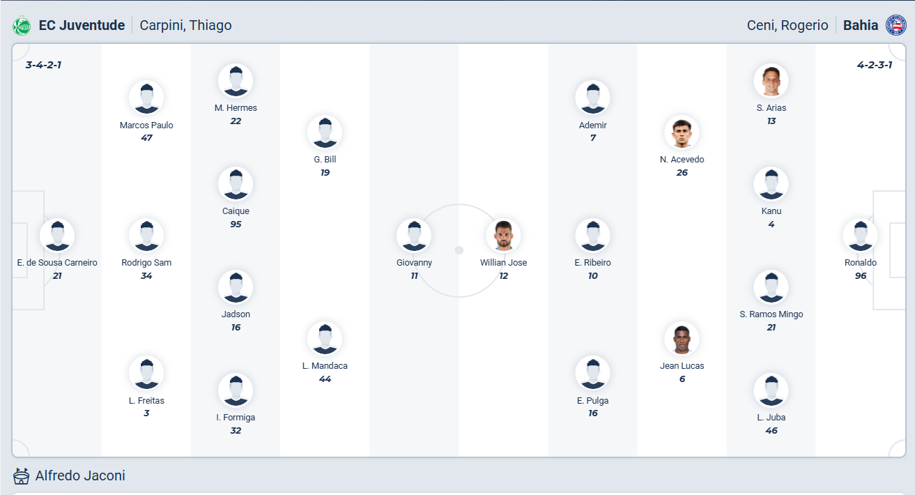 Juventude không phải đội bóng mạnh của giải vô địch Brazil, họ chỉ đứng thứ 15 mùa giải trước và có phải lo nghĩ đến việc xuống hạng. Mùa giải năm nay mọi thứ đang trở nên rất tệ với thầy trò HLV Thiago Carpini khi họ đứng thứ 19/20 đội. Với khoảng cách 6 điểm với vị trí an toàn và chỉ còn 3 trận đấu nữa, có thể nói nguy cơ xuống hạng với Juventude là rất cao. Họ buộc phải thắng ở vòng 36 để nuôi hy vọng trụ hạng nhưng trước đối thủ mạnh hơn như Bahia thì xem ra mục tiêu đó không thành công.