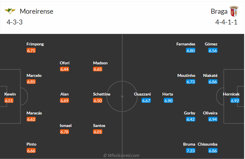 Moreirense đang đứng thứ 10 trên bảng xếp hạng, so với vị trí thứ 6 mùa giải trước thì rõ ràng đội bóng của HLV César Peixoto đang chơi không hề tốt. Phong độ của đội bóng này gần đây cũng là rất tệ khi hòa 3, thua 3 trong 6 vòng gần nhất. Nếu không chơi tốt hơn thì Moreirense sẽ còn tụt xuống sâu nữa trên bảng xếp hạng. Họ muốn có chiến thắng ở vòng đấu này nhưng với viêc phải đối đầu với đội mạnh như Braga thì xem ra cơ hội có điểm không cao. Nhiều khả năng Moreirense sẽ không thể hiện được nhiều và phải nhận thêm một trận thua nữa.