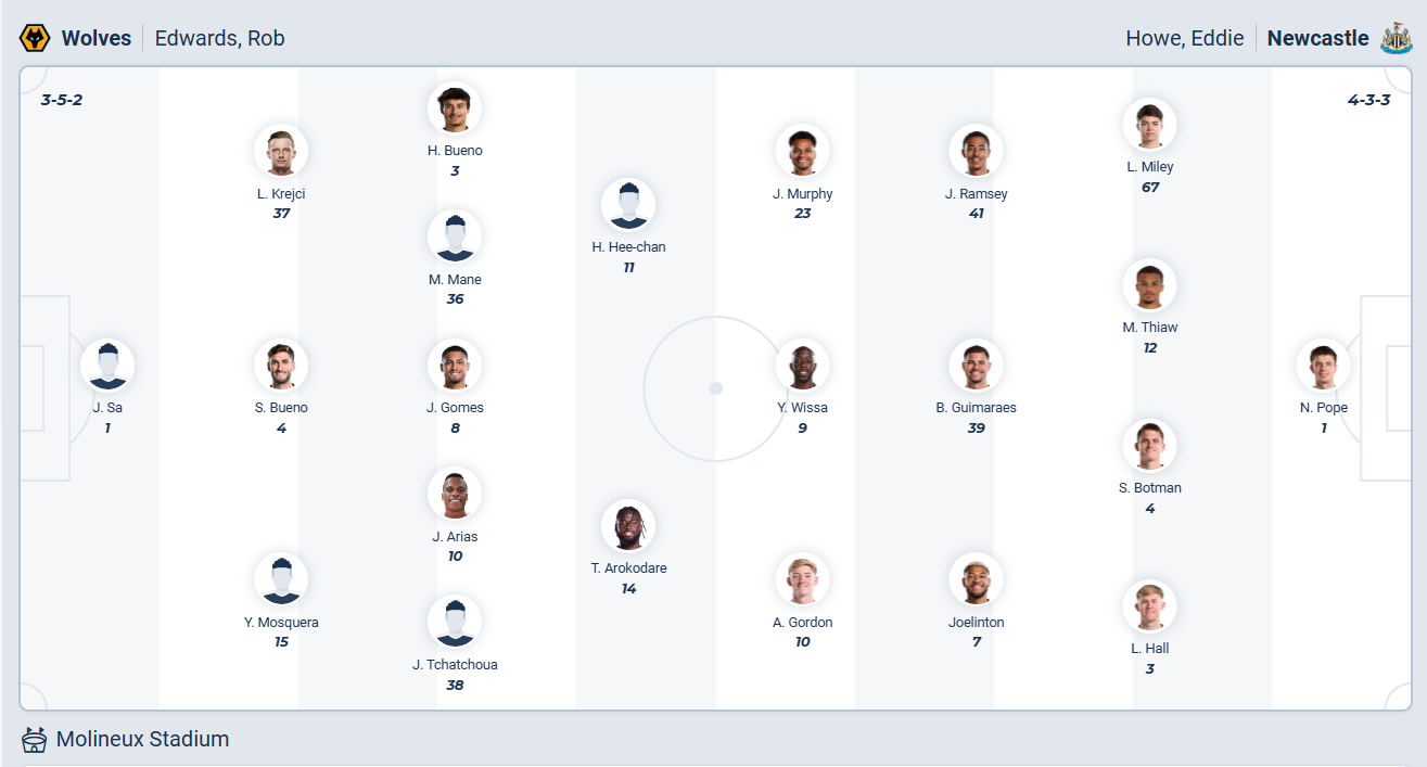 Newcastle thắng 3 vòng đấu gần nhất tại Premier League, chuỗi trận ấn tượng đó giúp đội bóng của HLV Eddie Howe leo lên vị trí thứ 6 trên bảng xếp hạng, Rõ ràng đây chưa phải vị trí khiến các cầu thủ Newcastle hài lòng và họ cần tiếp tục giành chiến thắng trong các trận đấu của mình, nhất là sau khi để thua tại bán kết lượt đi League Cup. Họ đặt mục tiêu giành chiến thắng khi đến làm khách trên sân của Wolves, nhưng rất có thể trước đội chủ nhà đang có phong độ tốt thì nhiều khả năng Newcastle sẽ chỉ có thể ra về với một kết quả hòa.